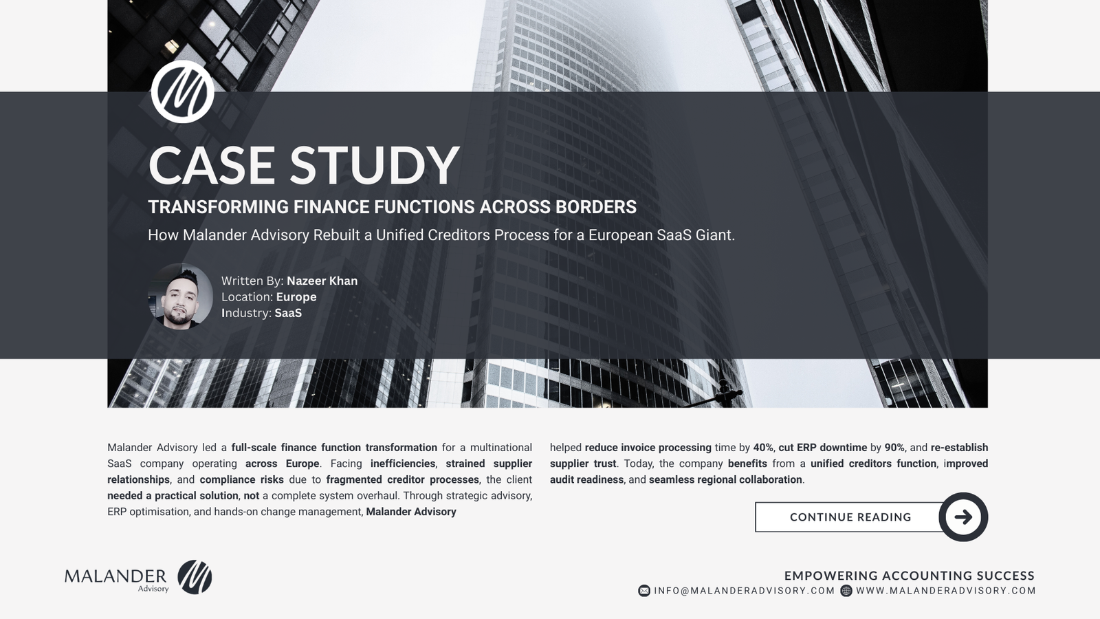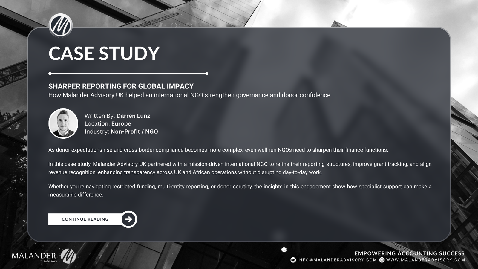 We help finance leaders strengthen reporting, documentation, and continuity ahead of audits and key reporting deadlines using proven frameworks and AI-enabled analysis to deliver clarity fast.